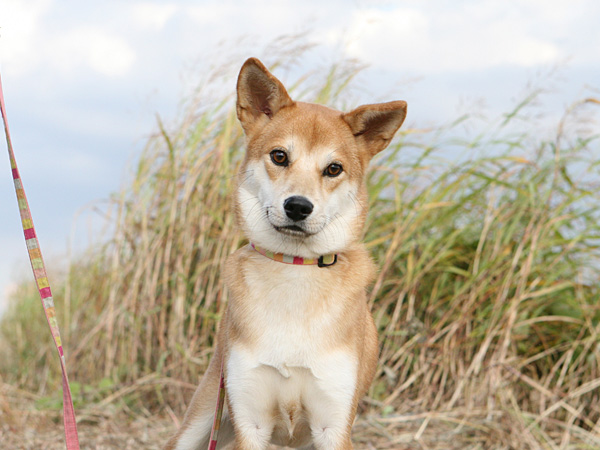 保護当時、人の手からおやつを食べることも出来ない程怯えていましたが、毎日人と接する事によって、徐々にスタッフになつくようになり、1ヶ月後くらい経つと、スタッフの姿を見つけると元気いっぱいシッポを振ってくれる程になりました。