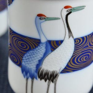 江戸時代から続く有田焼の老舗、香蘭社の光琳鶴 組湯呑